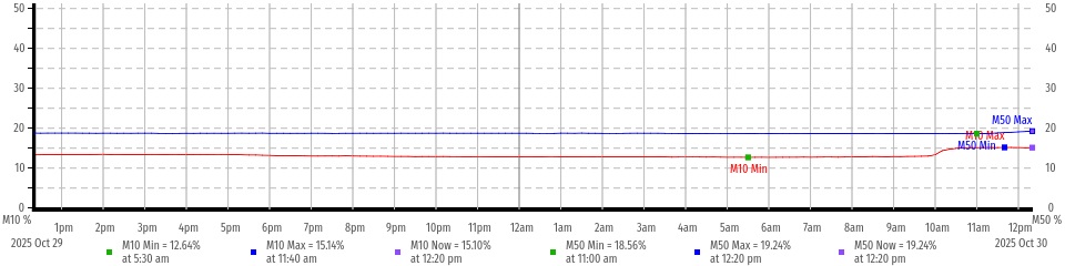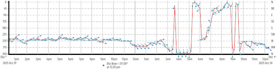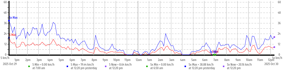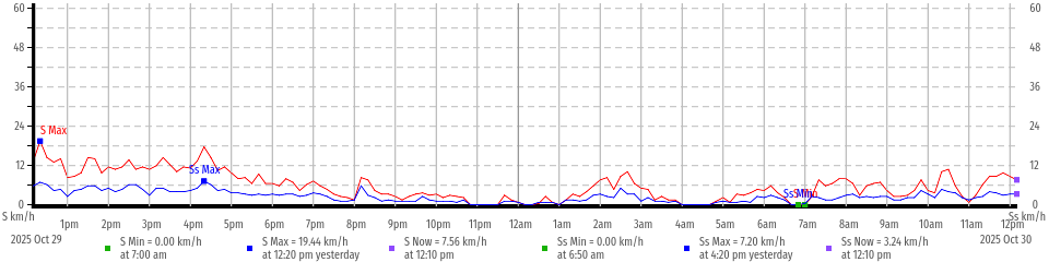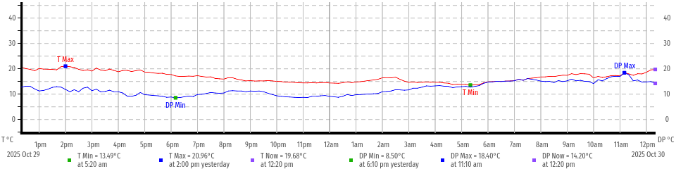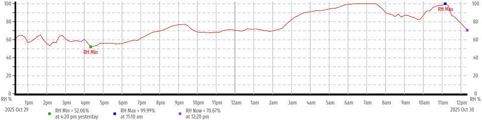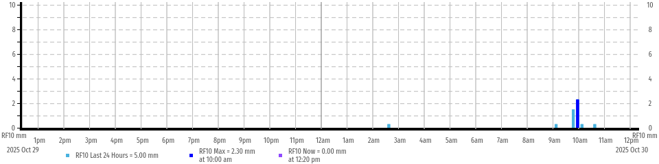 The 24-hour trend graphs shown here are sortable, meaning that the graphs’ position on the page can be rearranged by dragging and dropping into a new position. This can be useful for comparing graphs to see if there is any correlation between two set of data. For example, correlating evaporation with humidity.